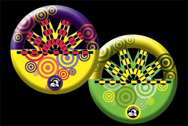 Left: "CRAZY UFO 2014 Yellow-Purple"